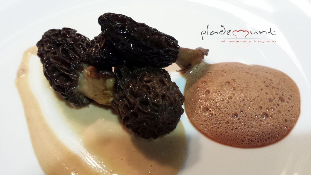A la hora de emplatar calentamos una sartén ligeramente engrasada con AOVE y doramos los trozos de secreto. En el plato hacemos una cama de salsa dónde reposará la carne. A una lado hacemos un bosque de brócoli. ¡Delicioso! y sorprendente.